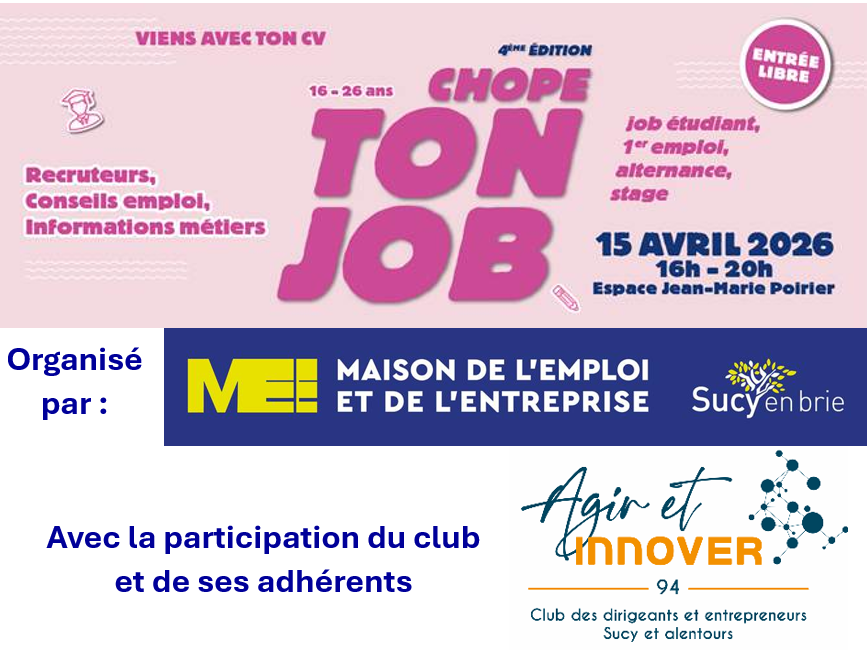 Agir et Innover 94 sera présent avec un stand dans l’espace conseil sur le thème « entreprenariat »